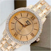 • Orologio Polso ZCC 13 Donna Moda Quarzo Acciaio Brillantini Oro Rosa Fondo Rosa