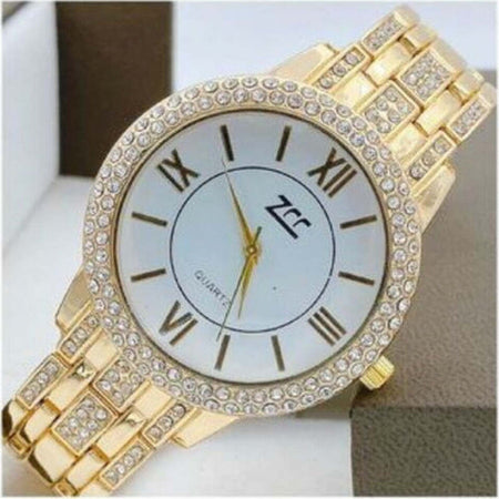 Orologio Polso Zcc 13 Donna Quarzo Acciaio Brillantini Moda Dorato Fondo Bianco