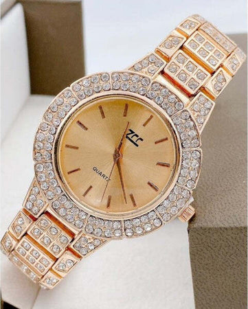 Orologio Polso Zcc Donna Quarzo Acciaio Moda Brillantinato Rosa Quadrante Rosa