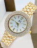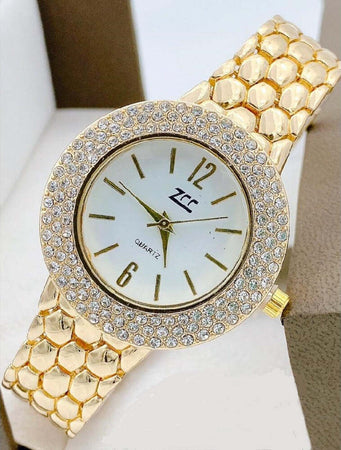 Orologio Polso Zcc Donna Quarzo Acciaio Moda Brillantini Analogico Dorato Bianco