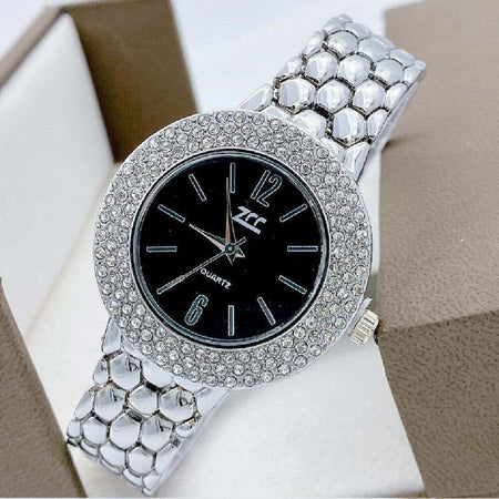 Orologio Polso Zcc Donna Quarzo Acciaio Moda Brillantini Analogico Silver Nero