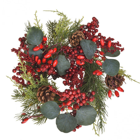 Ghirlanda tonda corona dietro porta con pigne e bacche in PE effetto Real Touch Ø 36 cm