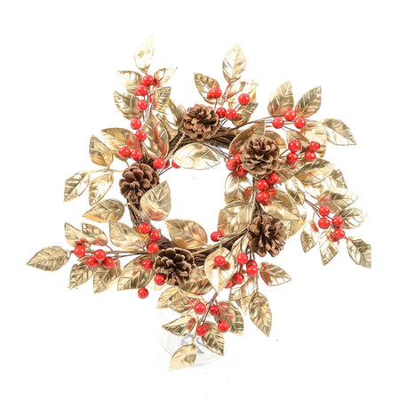 Porta candele natalizio "Golden age" con bacche e pigne centritavola Ø 42 cm