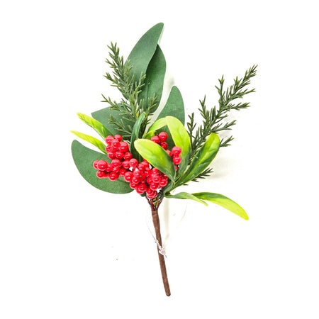 Rametto natalizio con bacche rosse e foglie decorative h 21 cm