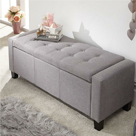 Cassapanca Pouf Contenitore Panca Moderna 110x40 H 40cm con Bottoni Grigio