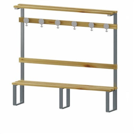 Panca da spogliatoio in metallo e legno di cm. 200 per 6 persone con appendiabiti incluso