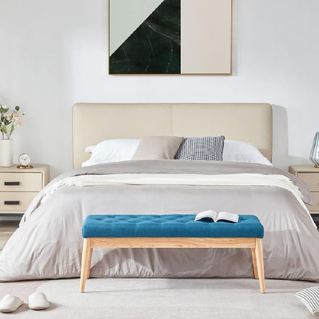 Panchina Hotel Legno e Tessuto Chester 108x40cm Ingresso Camera da Letto Blu