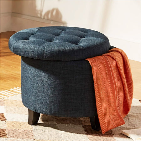 Pouf Sgabello Contenitore in Legno e Tessuto Trapuntato Poggiapiedi Blu 51x51x43