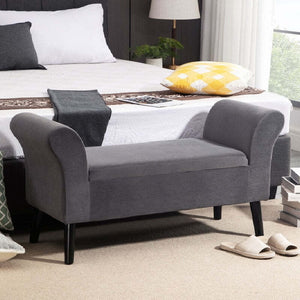 baule ingresso da letto elegante grande pouf negozio Panca Contenitore Imbottita per Camera in Tessuto Vellutato con Braccioli, 111.5x41x65cm - Grigio F838-172GYA