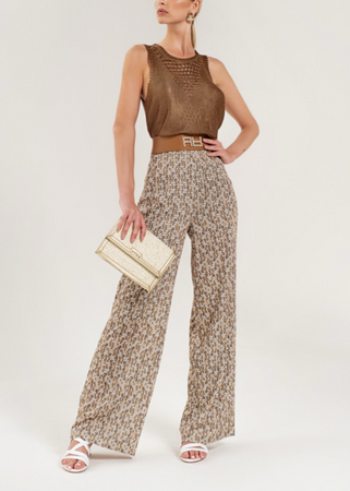 Pantaloni a fantasia palazzo con dettagli panna e oro.
