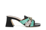 Ciabatte in pelle e pelle scamosciata con morsetto