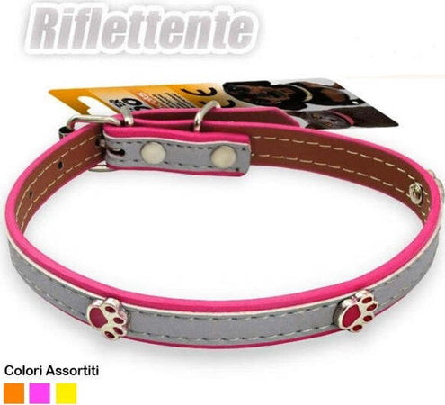 Simpatito e alla moda! Collare in cuoio con decorazione e strass zampetta riflettente. Ideale per cani di piccola e media taglia. Il collare ha una dimensione di 40 cm di lunghezza e 1,5 cm di larghezza. Chiusura a cinta in diversi colori.