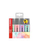 Astuccio 4 pz.: verde menta, rosa antico, glicine, carta da zucchero. Evidenziatore dotato di tecnologia STABILO Anti-Dry-Out: resiste fino a 4 ore senza cappuccio.
