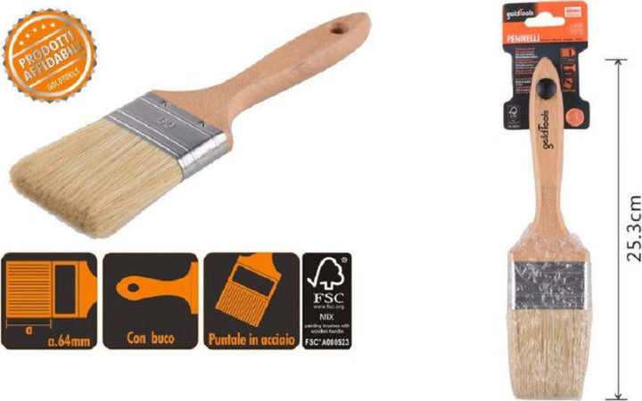 Pennello Piatto 25.3 Cm Manico In Legno Setole Morbide Per Pittura Vernice 90206