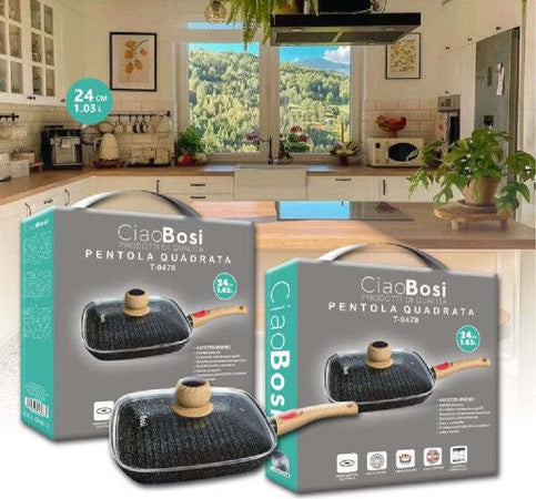 • Dimensioni Ottimali: La padella pentola quadrata misura 24cm, offrendo la dimensione perfetta per cucinare una varietà di piatti.