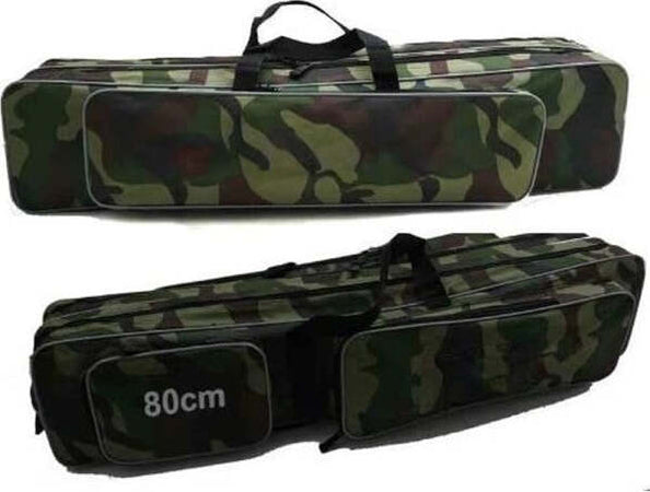Borsa Fodero Custodia Porta Canne Da Pesca 80cm Con 2 Scomparti Zip Pieghevole