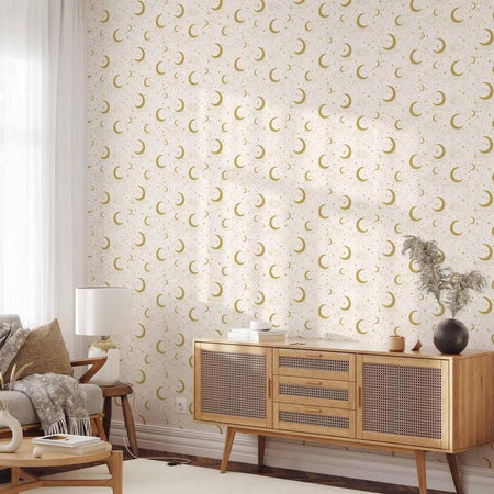 Tappezzeria murale - Moonlit Nights - Delicate Moons and Clouds in a Warm Tone