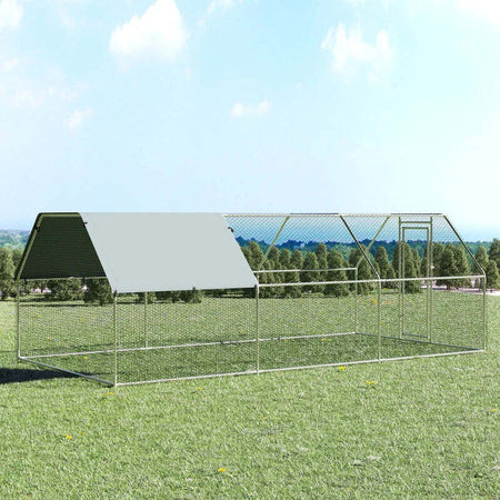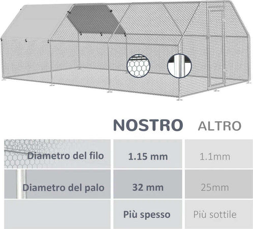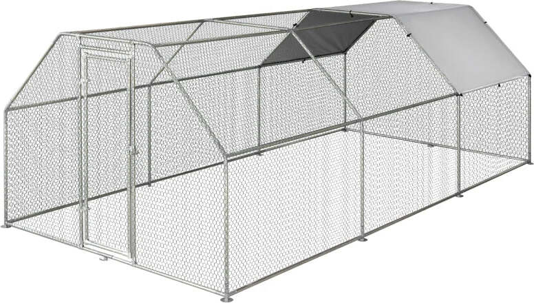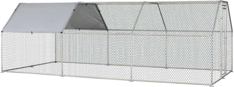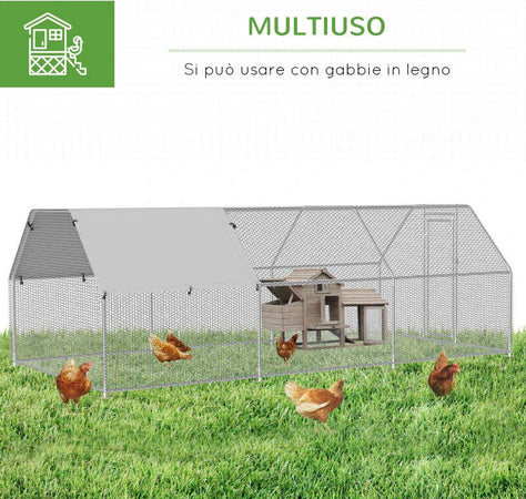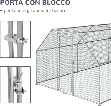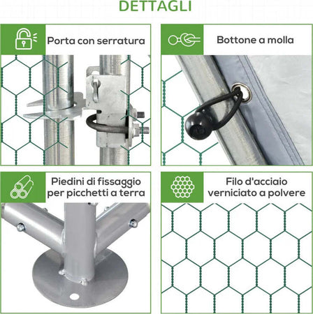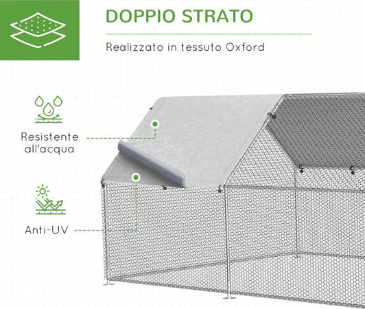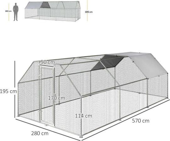 Recinto Gabbia per Galline in Metallo Galvanizzato Impermeabile, Pollaio con Porta e Copertura Oxford, 280x570x195cm HJ6D51-117HJ6