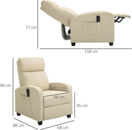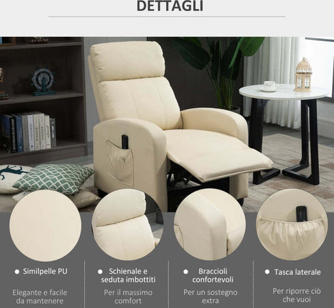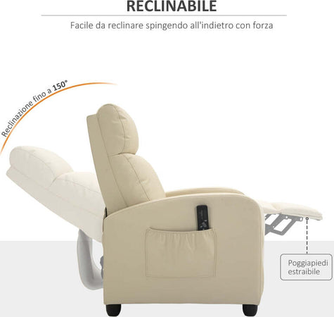 F700-143V90WTA Poltrona Relax Massaggiante con Telecomando e 8 Programmi, Reclinazione e Poggiapiedi, 68x88x98cm, Crema