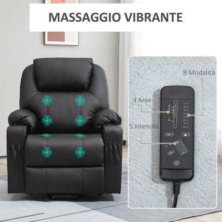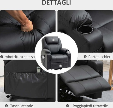 poltrona anziani disabili elettrica alza persona soggiorno salotto poltrona letto relax massaggiante con telecomando punti massaggio alzata assistita in pelle imbottita reclinabile massaggi poltrona nera poggiapiedi poltrone elettriche YGT713-096BKGTT