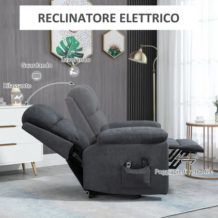 Poltrona Alzapersona Reclinabile fino a 135° con 8 Punti Massaggianti, Telecomando e Poggiapiedi 85x94.5x103 WE4713-097WE4