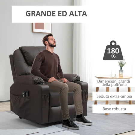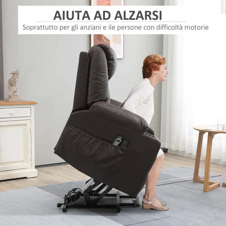 Poltrona Alzapersona Reclinabile fino a 135° con Portabicchieri, Telecomando e Poggiapiedi 88x92x106 cm, Marrone GH4713-096BNGH4