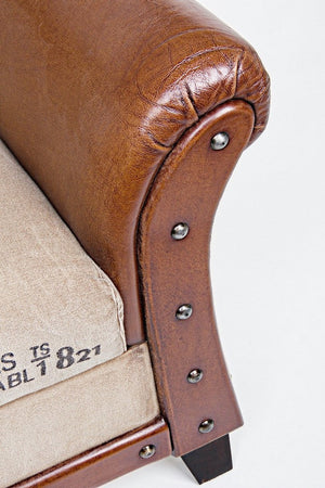 Poltrona "Charleston" per interno, Struttura In Legno Di Mango, Rivestimento In Tela Riciclata E Vera Pelle Di Bufalo 86 x 76 x 77h cm