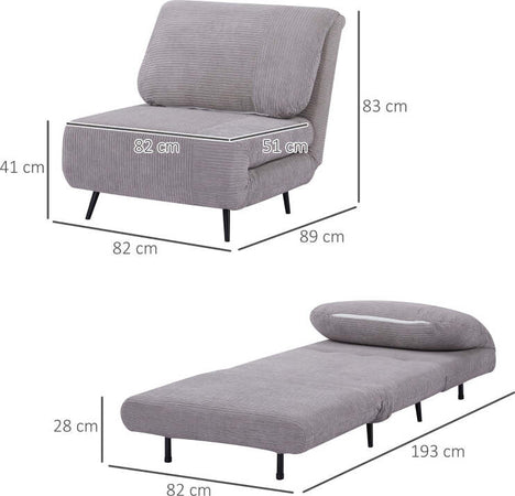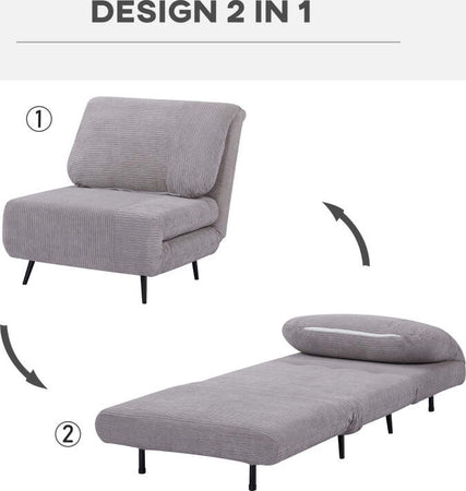 poltrona Letto a sedia materasso brandina Letto 2 in 1 Singola, Schienale Regolabile su 3 Livelli e Imbottito , Struttura in Legno e Acciaio F839-463V01LGA