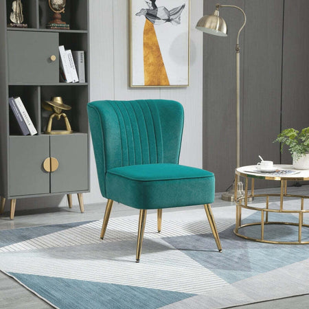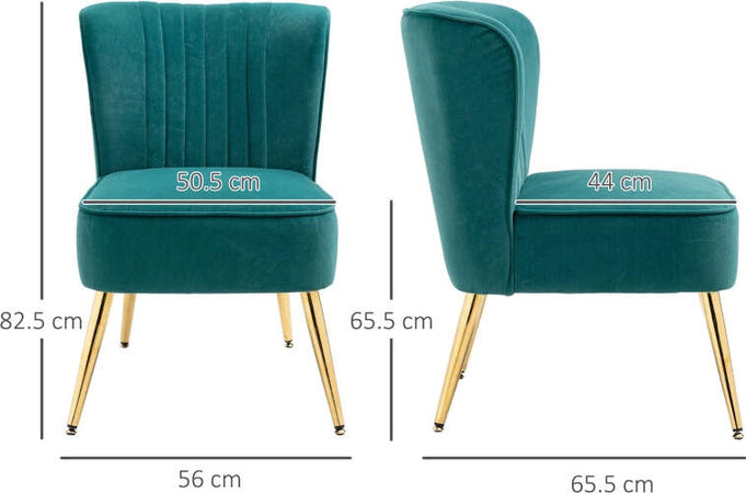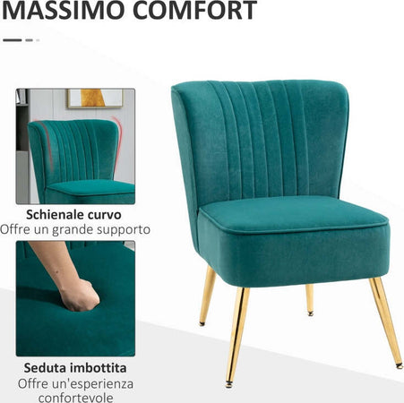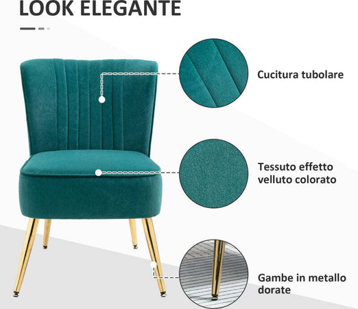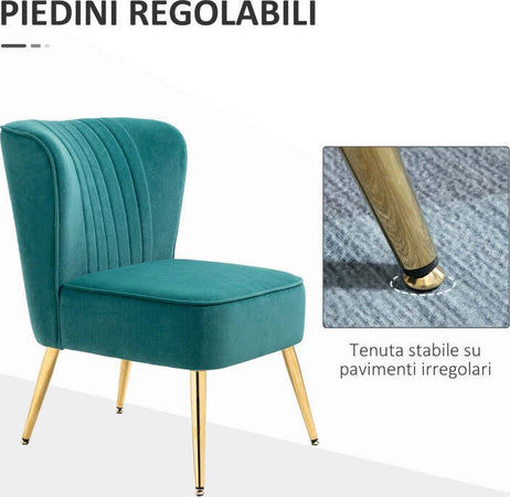 Poltrona Moderna in Stile Scandinavo Imbottita e Rivestita in Tessuto Vellutato, 56x65.5x82.5cm - Verde poltroncina sedia salotto soggiorno cucina camera ufficio studio F839-317GNA
