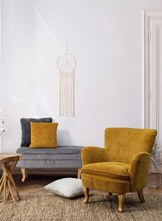 Poltrona "Orlins" per interno, Struttura In Legno Di Pino E Compensato, Rivestimento In Poliestere Effetto Boucle', Capitonne' 71.5 x 72.5 x 79h cm