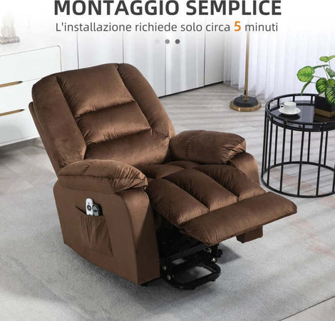 Poltrona Relax Alzapersona Reclinabile, Massaggiante e Riscaldata in Velluto, Marrone WS9713-160V90DRWS9