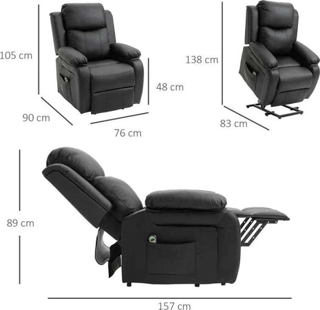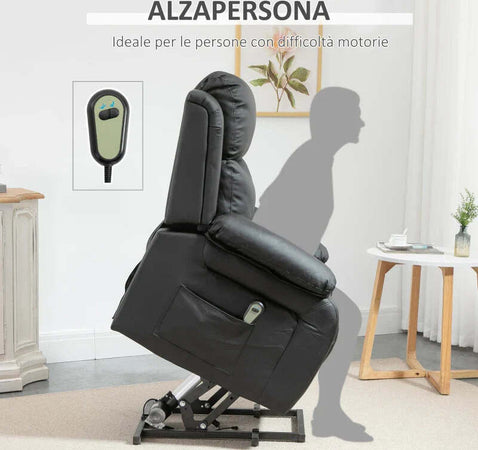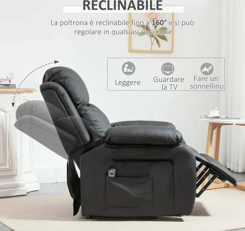 Poltrona Relax Elettrica e Alzapersona Reclinabile fino 160° con Telecomando, in Similpelle - Nero WE4713-092V90BKWE4