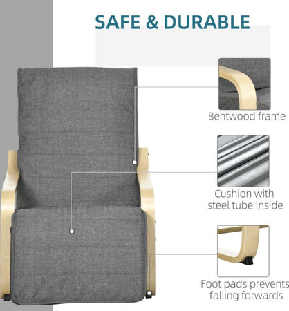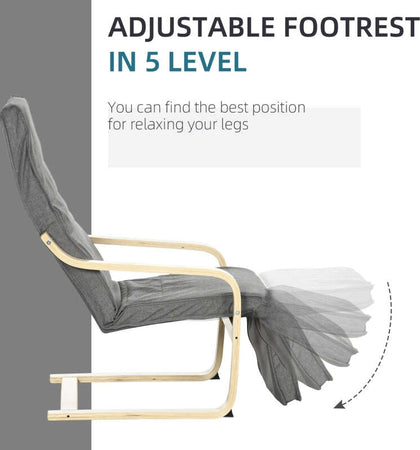 sedia Poltrona Relax con Poggiapiedi per camera soggiorno a 5 Livelli e Poggiatesta in Legno di Betulla e Tessuto, Grigio F833-132V00GYA