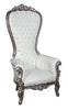 Il design riprende fedelmente lo stile Luigi XVI, caratterizzato da linee classiche, eleganti e armoniose, che si sposano perfettamente con l'idea di una residenza di prestigio. La forma a trono evoca immediatamente un senso di regalità e importanza, rendendo questa poltrona il punto focale di qualsiasi stanza. L'attenzione al comfort è evidente nella seduta e nello schienale, entrambi imbottiti artigianalmente. L'imbottitura, realizzata con materiali di prima scelta, offre un sostegno confortevole e avvolgente, invitando al relax. La lavorazione accurata delle imbottiture assicura non solo un'estetica impeccabile ma anche una durata prolungata, resistendo all'uso quotidiano senza perdere la sua forma originale. È una seduta che unisce l'opulenza visiva alla funzionalità pratica, ideale per lunghi momenti di lettura o conversazione.