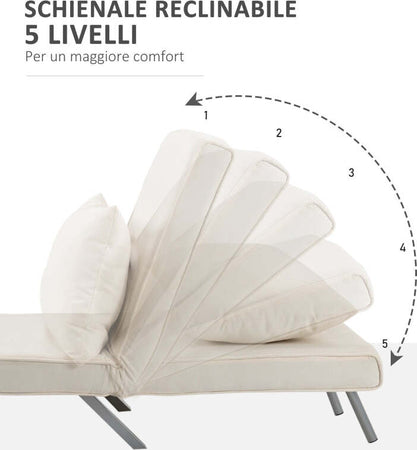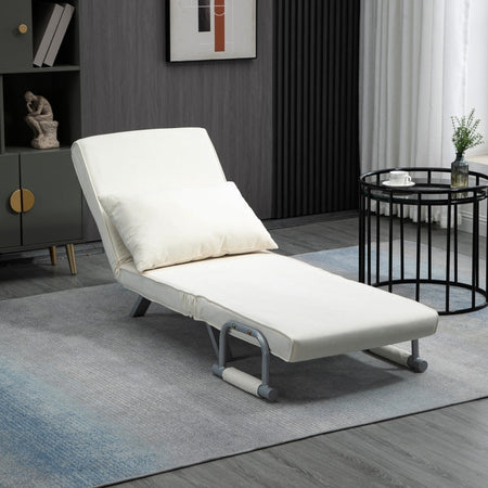 Poltrona Letto singolo materasso brandina Lettino 2 in 1 sedia con Schienale Inclinabile in 5 Posizioni, 65×69×82cm, Beige F833-040CWA