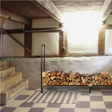 Portalegna in Metallo Interno Esterno Legnaia Camino Stufa 200x36x115cm Nero