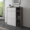 Scarpiera Takimi con 2 ante a ribalta 1 cassetto colore grafite e bianco