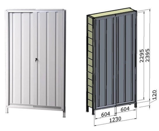 Porta scorrevole in lamiera verniciata per fronte scaffalatura cm. 120x244h