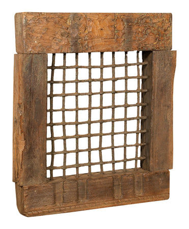 Biscottini Finestra finestrina grata in legno massello e in ferro antica e vecchia medievale con telaio da interno o da esterno