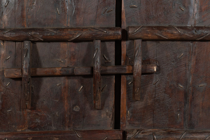 Portone/porta antica in legno massello di teak di dimensioni lunghezza 102 cm, profondità 8 cm, altezza 194 cm. Questo portone deriva da demolizioni e recuperi di antichi ed importanti fabbricati. Finemente restaurato e trattato anche per uso esterna, ogni porta è un pezzo di vero ed unico antiquariato. Tutte le misure si riferiscono all'ingombro massimo dell'articolo.