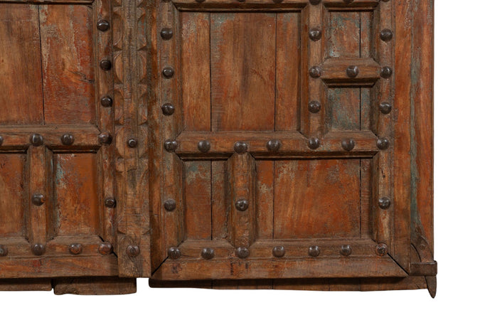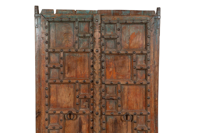 Portone/porta antica in legno massello di teak di dimensioni lunghezza 110 cm, profondità 9 cm, altezza 202 cm. Questo portone deriva da demolizioni e recuperi di antichi ed importanti fabbricati. Finemente restaurato e trattato anche per uso esterna, ogni porta è un pezzo di vero ed unico antiquariato. Tutte le misure si riferiscono all'ingombro massimo dell'articolo.