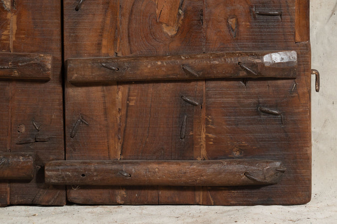 Portone/porta antica in legno massello di teak di dimensioni lunghezza 100 cm, profondità 8 cm, altezza 174 cm. Questo portone deriva da demolizioni e recuperi di antichi ed importanti fabbricati. Finemente restaurato e trattato anche per uso esterna, ogni porta è un pezzo di vero ed unico antiquariato. Tutte le misure si riferiscono all'ingombro massimo dell'articolo.