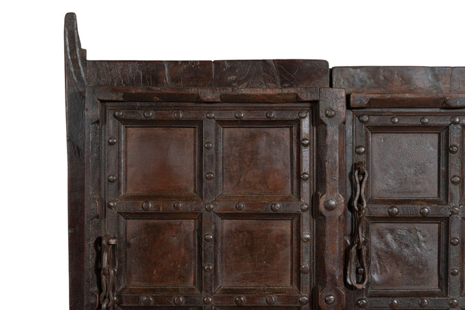 Portone/porta antica in legno massello di teak di dimensioni lunghezza 101 cm, profondità 8 cm, altezza 184 cm. Questo portone deriva da demolizioni e recuperi di antichi ed importanti fabbricati. Finemente restaurato e trattato anche per uso esterna, ogni porta è un pezzo di vero ed unico antiquariato. Tutte le misure si riferiscono all'ingombro massimo dell'articolo.
