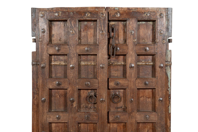 Portone/porta antica in legno massello di teak di dimensioni lunghezza 112 cm, profondità 6 cm, altezza 170 cm. Questo portone deriva da demolizioni e recuperi di antichi ed importanti fabbricati. Finemente restaurato e trattato anche per uso esterna, ogni porta è un pezzo di vero ed unico antiquariato. Tutte le misure si riferiscono all'ingombro massimo dell'articolo.