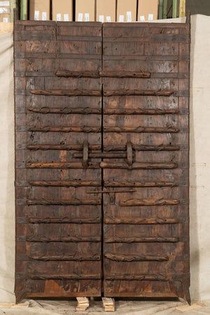 Biscottini Porta portone in legno massello e ferro da interno o da esterno vecchia e antica medievale scorrevole