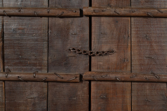 Biscottini Porta portone in legno massello e ferro da interno o da esterno vecchia e antica medievale scorrevole