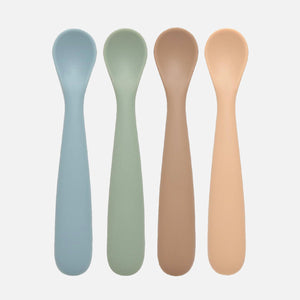BEABA Lotto di 4 cucchiai di silicone della seconda età (blu scuro + rosa + nebbia leggera + verde arioso)