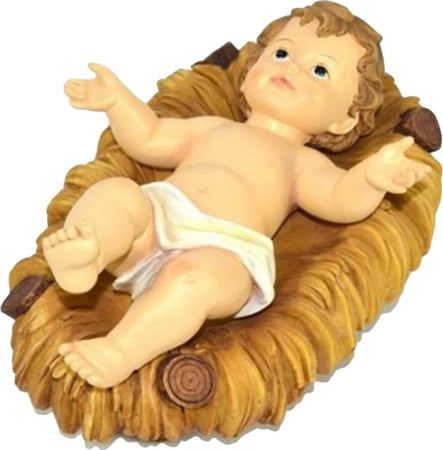 Gesù bambino con culla statua bambinello per presepe in poliresina 7,5 cm