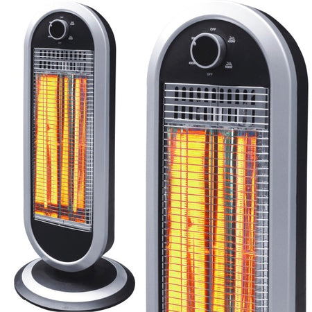 Stufa Al Carbonio 2 Potenze Selezionabili 450/900w Base Oscillante Nero E Silver