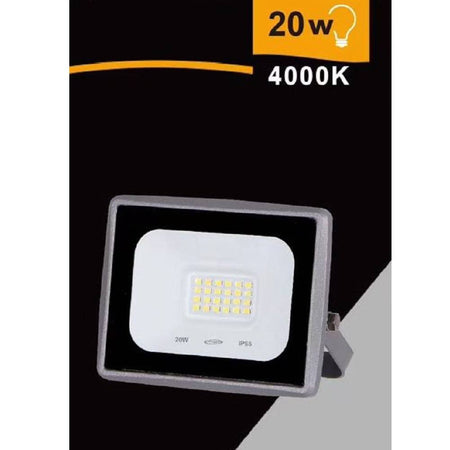 Faretto Led Faro 20 W 1800 Lm Ip65 Grigio Luce Calda Fredda Naturale Ek02-20w-g
